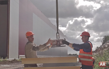 Монтаж длинных сэндвич-панелей (12-14 метров) вакуумной присоской Clad Boy 4