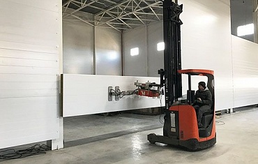 Манипулятор и вакуумный захват Arlifter GS-350 помогли при строительстве ангара из сэндвич-панелей.