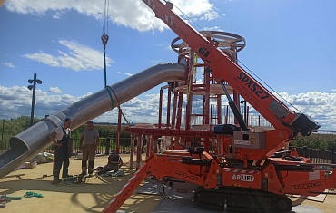 Мини-кран SPX527 произвел монтаж оборудования для детской площадки в музейно-историческом парке в пригороде Санкт-Петербурга.