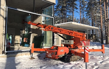 Мини-кран SPX527 и вакуумный захват Arlifter GS-850 помогли в остеклении частного дома в одном из пригородов Санкт-Петербурга.
