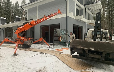 Мини-кран Арлифт SPD360 и вакуумный захват Arlifter GS-360 помогли произвести монтаж стеклопакетов в одном из поселков Ленинградской области.