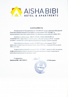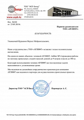 Благодарность от ТОО "АСП Билд"