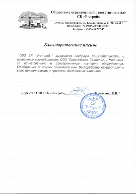 Благодарственное письмо от ООО СК "Р - строй"