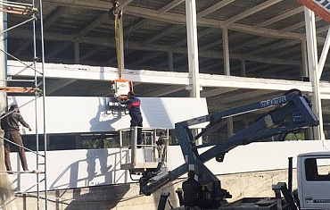 Монтаж сэндвич-панелей. Строительство футбольного манежа в городе Тимашевск (Краснодарский край)
