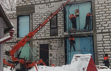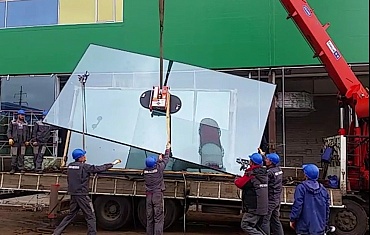 Реконструкция фасада Дворца Молодежи, Екатеринбург. Монтаж стекла весом 1100 кг